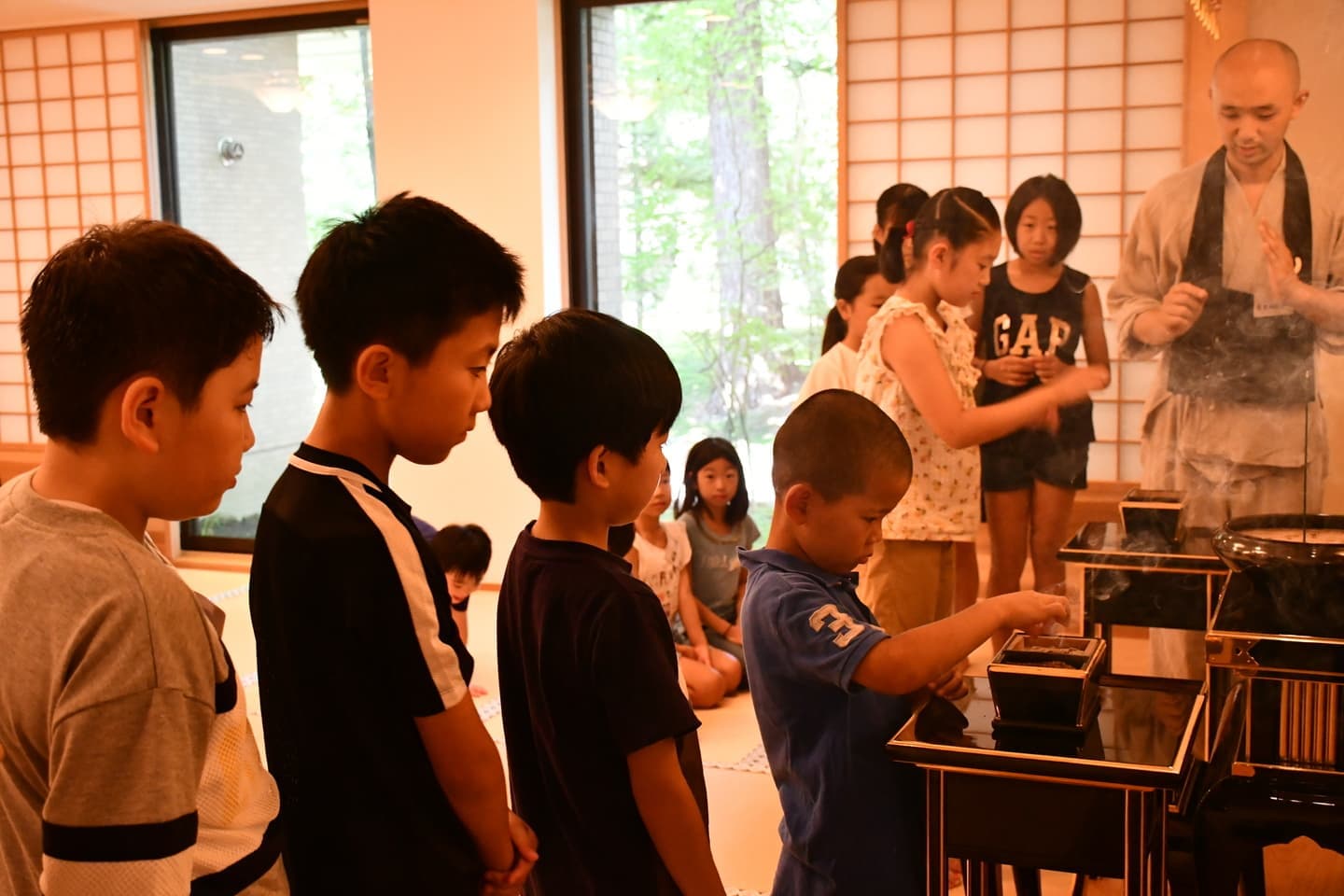 仏さまへのお参り、坐禅、作務(掃除)、食事作法など、お寺の行持を通して、規則正しい生活の大切さを学びましょう!お寺の探検や、お楽しみの時間も設けています。一日、お寺での生活を体験してみませんか?